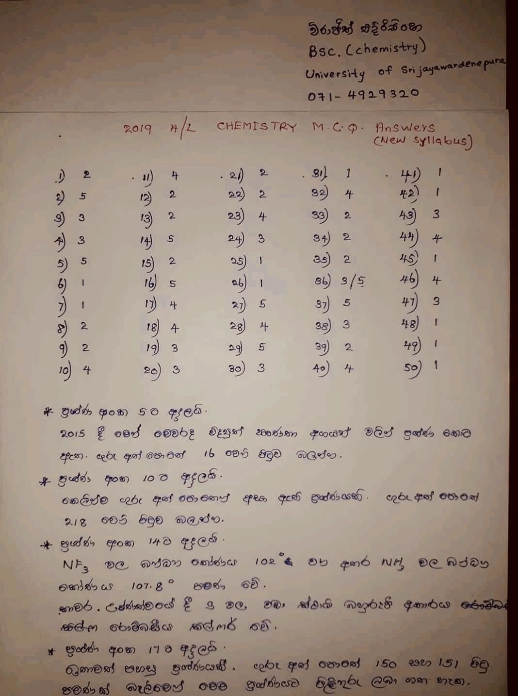 2019 A/L Chemistry MCQ Answers and analysis by Anushka Indunil