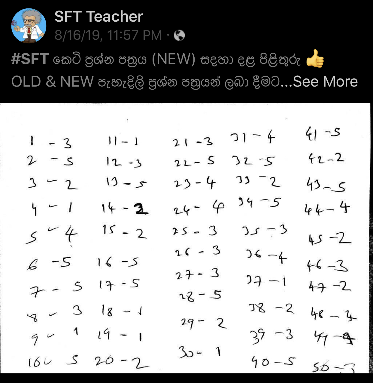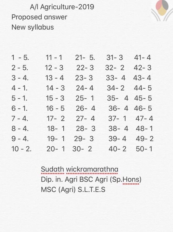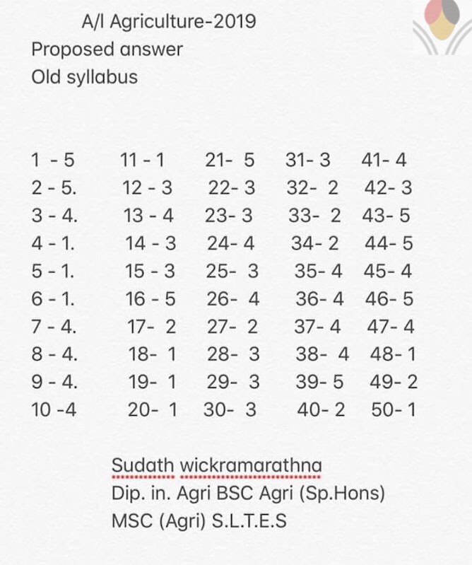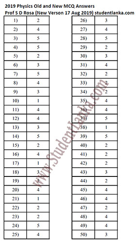 Answers for 2019 A/L MCQ questions prepared by various tuition teachers and published in social media and other places are presented here. Please note studentlanka cannot guarantee the accuracy of these MCQ answers, and please always check with the official marking scheme answers.